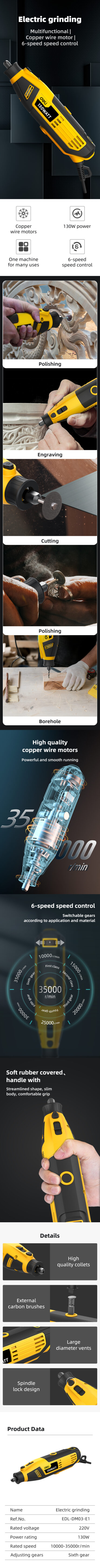 Name:EDL-DM03-E1 #Mini Grinder #130W3mm #YELLOW